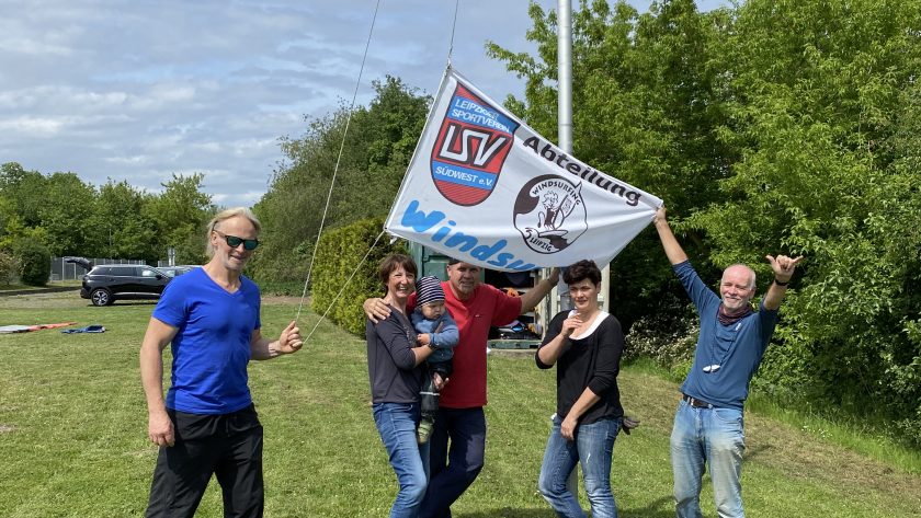 04. Mai 2024: Offizielles ANSURFEN heißt für uns Surflinge, unter anderem die Vereins eigenen Windsurfriggs (Segel, Gabelbaum und Riggs) aufzubauen, welche vor allem diejenigen von uns nutzen, die sich noch nicht mit eigenem Material versorgen konnten oder die sich noch noch nicht für die passenden Segelgrößen entscheiden konnten. Also sowohl zu Testzwecken als auch für sogenannte Windsurfaufsteiger in unserem Verein. So mancher Neuling lernt dabei auch erst einmal die ersten Schritte für den Aufbau der Segel kennen. Der richtige Trimm entscheidet schließlich im Wesentlichen wie sich die komplette Ausrüstung, Brett und Rigg, später mal auf dem Wasser verhält. Verbunden ist dieser Tag natürlich auch mit der regelmäßigen Pflege des Vereinsgeländes. Da ist ständig was zu tun. Rasenmähen steht dabei immer ganz weit oben auf der ToDo-Liste. Am Ende des Tages findet schließlich die während der Winterpause sorgfälltig eingelagerte Vereinsfahne beim sogenannten Fahnenapell wieder ihren Weg an die Spitze des Fahnenmastes. Mit der Hoffnung, dass sie auch in diesem Jahr wieder oft in der richtigen Windrichtung weht. Immer gemäß dem Motto „Möge der Wind mit uns sein.“